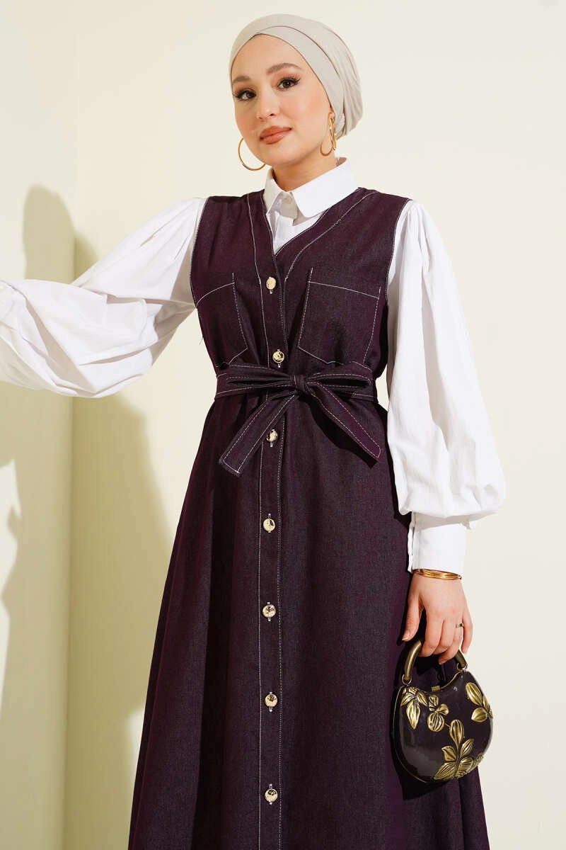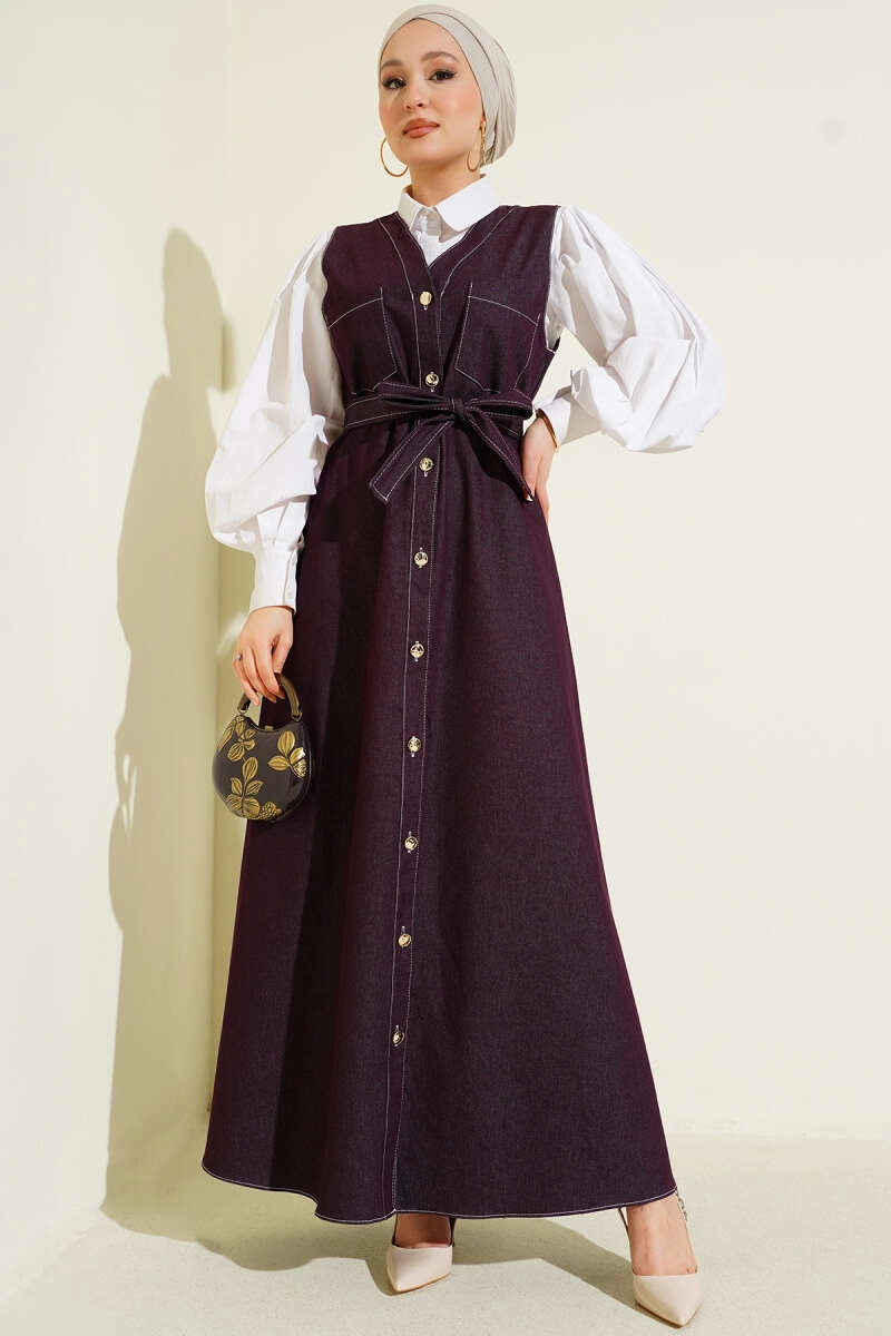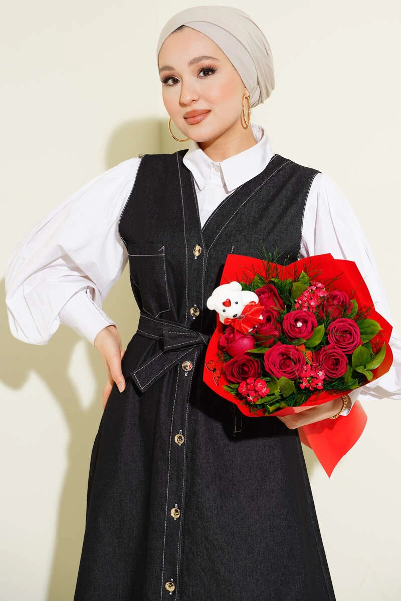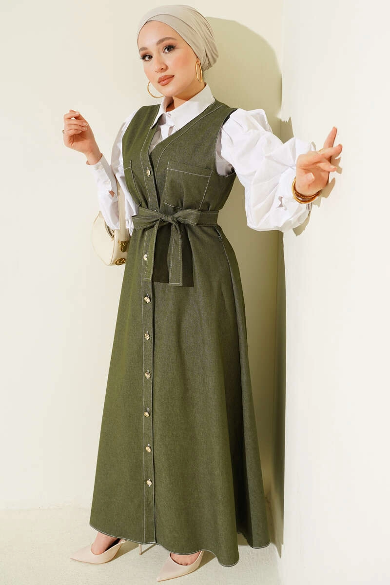 فستان جينز بلا أكمام بأزرار أمامية وجيوب مزدوجة | RM0569-4002